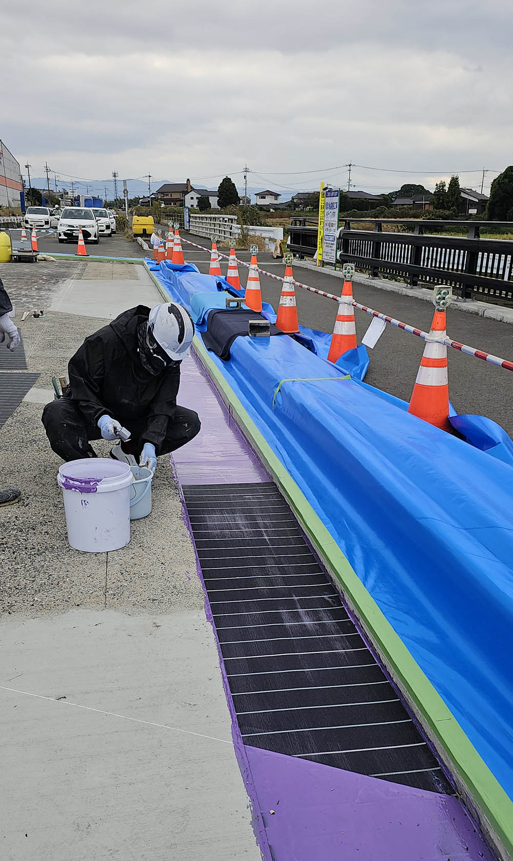 橋梁メンテナンスとは、橋の安全性を維持し、長く使い続けるための点検・補修・補強などを行う仕事です。 橋は時間の経過とともに、風雨・振動・車両の通行などによって少しずつ劣化していきます。 そのため、定期的な点検と適切な修繕を行うことで、事故や老朽化によるトラブルを未然に防ぎ、橋の寿命を延ばすことができます。みなさまの安全を守る大切なメンテナンス工事なのです。
